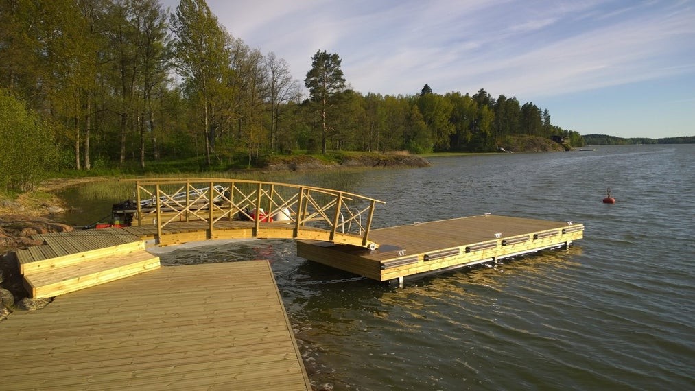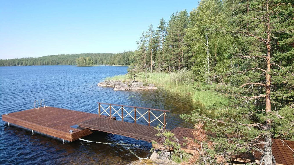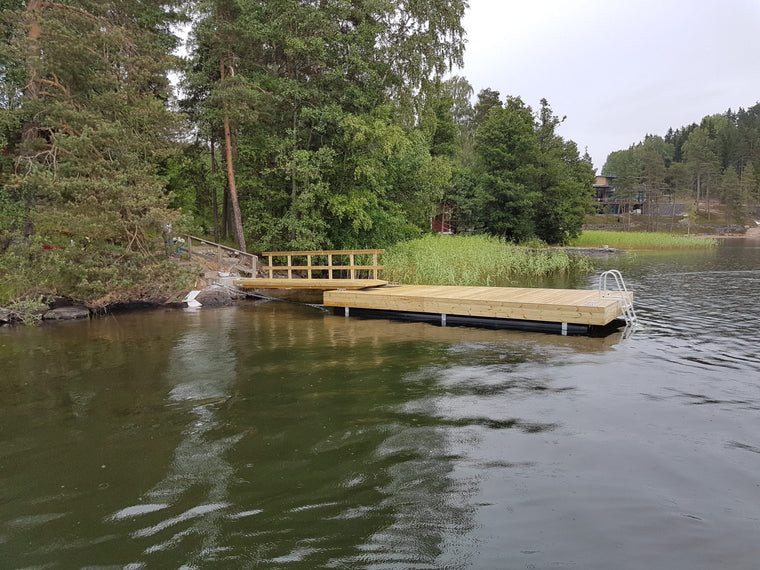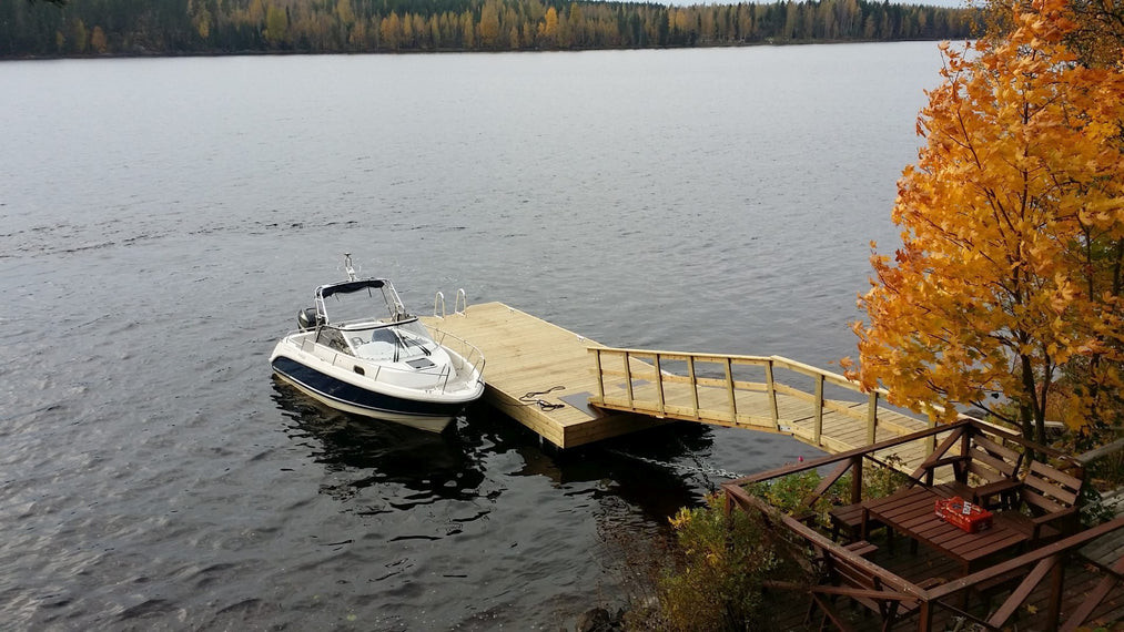 Eero putki on ehdottomasti suosituin talvehtivista laiturimalleistamme. Siinä yhdistyy samassa paketissa leveän laiturin tukevuus ja venekäyttöön sopiva kansikorkeus. Järeä teräsrunko yhdistettynä betoniponttonilaitureista tuttuun puurunkoon tekee laiturin rakenteesta jäykän sekä kestävän. Soveltuu myös matalampaan rantaan.