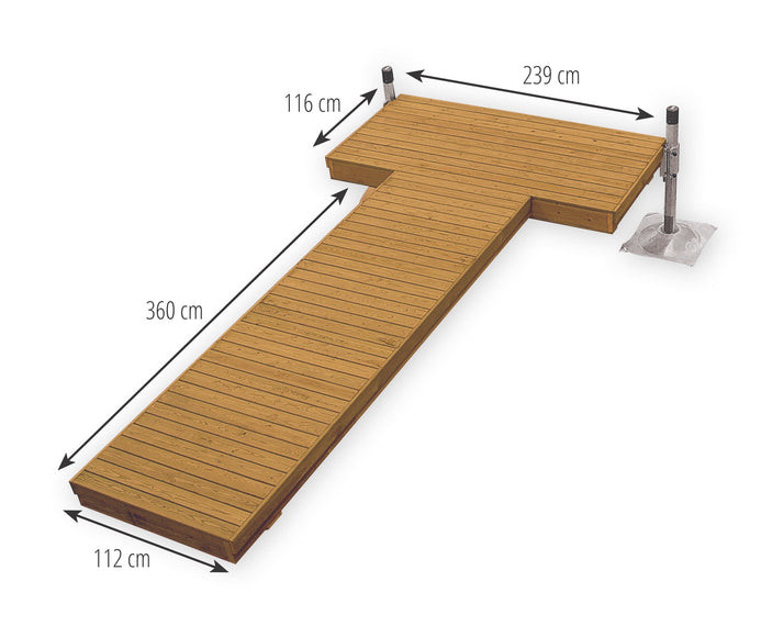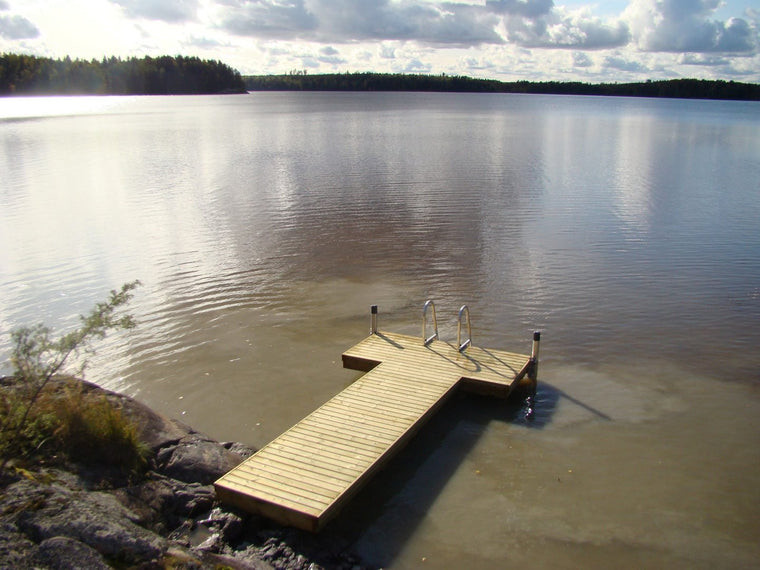 Jokamies on perinteinen T-mallinen pylväslaituri. Soveltuu tukevana ja turvallisena laiturina erinomaisesti uintilaituriksi. Jokamies on suosituin pienen koon pylväslaiturimallimme.