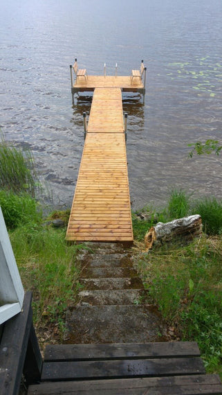 Oloneuvos jatkeella on suosituimman pylväslaiturimallimme pidennetty versio. 10-metrinen käyntisilta osuus on vakaa säädettävien pylväiden ansiosta. Kokonaisuus on tukeva ja turvallinen niin lapsille kuin vanhemmille ihmisille. Tukevuutensa ja koonsa vuoksi tämä malli soveltuu erinomaisesti oleskelu ja uintilaituriksi.