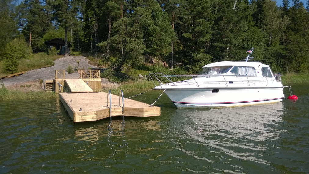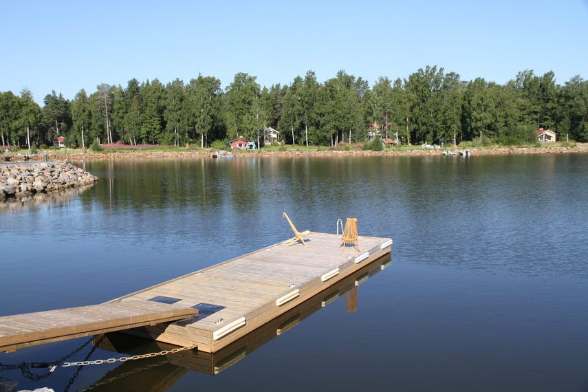 Betoniponttonilaituri, joka soveltuu loistavasti oleskeluun tai pituutensa vuoksi myös hyvin venekiinnitykseen. Reilusti oleskelutilaa ja kuuden ponttonin ansiosta kantava ja vakaa laituri.