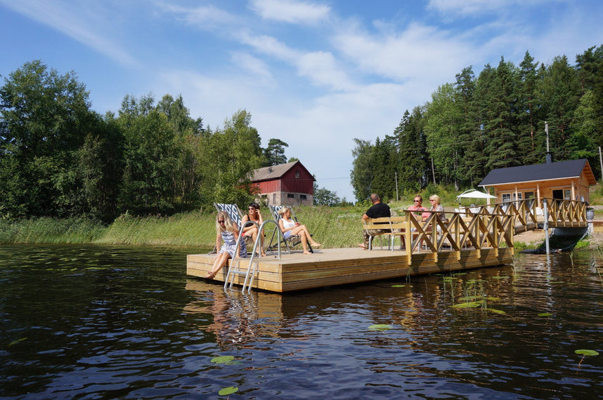 Timo betoni on oikea valinta silloin, jos tarvitse lisäpituutta venekiinnitystä varten. Hulppean kokoinen päätyosa ja reilu oleskelutila kutsuvat suuremmatkin seurueet vapaa-ajan viettoon.